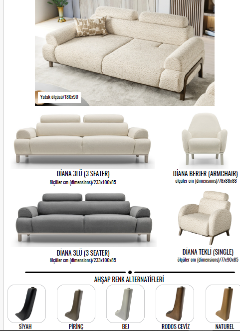 Diana-Sofagarnitur; modern, Schlicht, Beine aus Massivholz, verstellbarer Rücken, Nackenstutz